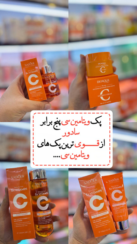 - سایر ویژگی ها:شامل: فوم شستشوی صورت سفید و شفافکننده ویتامین سی 5 برابر سادور تونر سفید و شفافکننده ویتامین سی 5 برابر سادور سرم سفید و شفافکننده ویتامین سی 5 برابر سادور 30ml لوسیون صورت سفید و شفافکننده ویتامین سی 5 برابر سادور ژل کرم صورت سفید و شفافکننده ویتامین سی 5 برابر سادور